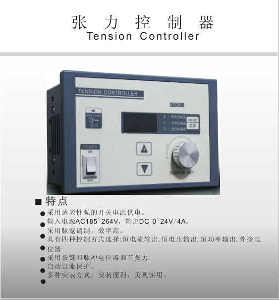 最大輸出電流可達4A。KTC800A手動張力控制器可以方便實現薄膜印刷加工,