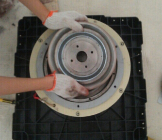 5.加入磁粉后,請將定子、定子螺栓、鋁蓋、鋁蓋螺栓等按原來位置固定,這一步很重要,如果大意會導致泄漏磁粉;